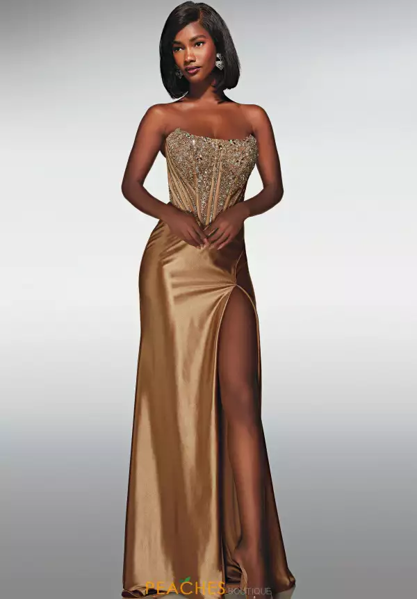 Be exquisite in this Alyce Paris fitted prom dress style 62034. The fabulous strapless scoop neckline on the drop waist sheer illusion bodice is bejeweled with sparkling bead work. The stretch satin skirt shows off your curves with a thigh high front side slit and glamorous sweeping train.